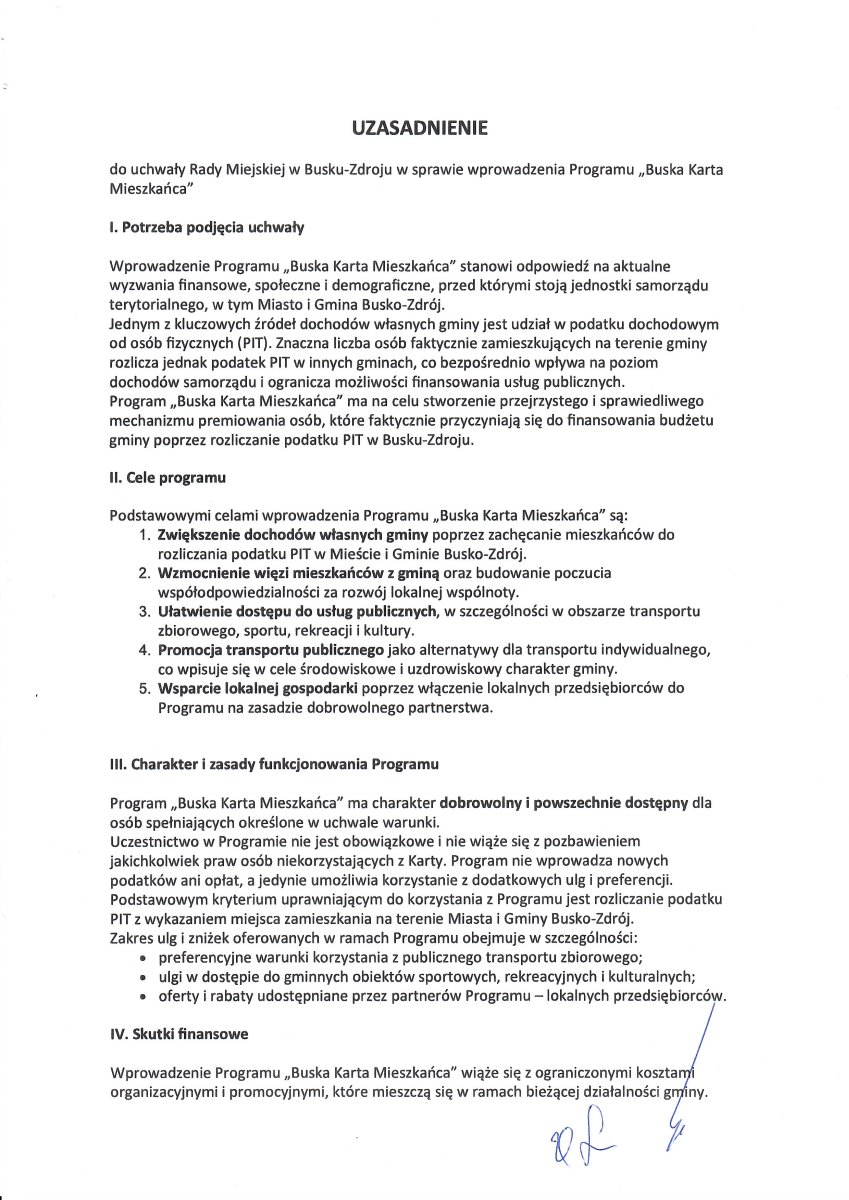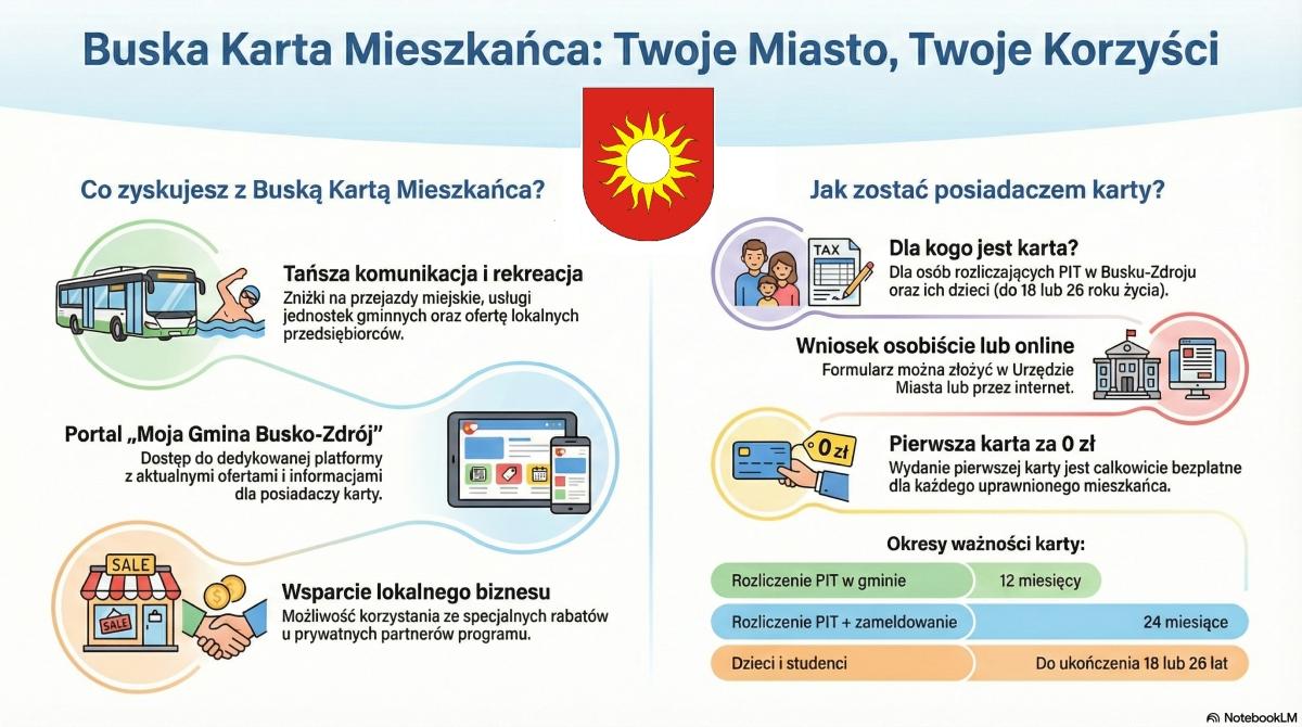 Program Buskiej Karty Mieszkańca ma premiować osoby, które faktycznie utrzymują gminę poprzez rozliczanie podatku PIT w Busku-Zdroju, a jednocześnie wspierać transport publiczny, lokalne usługi, sport i rekreację.