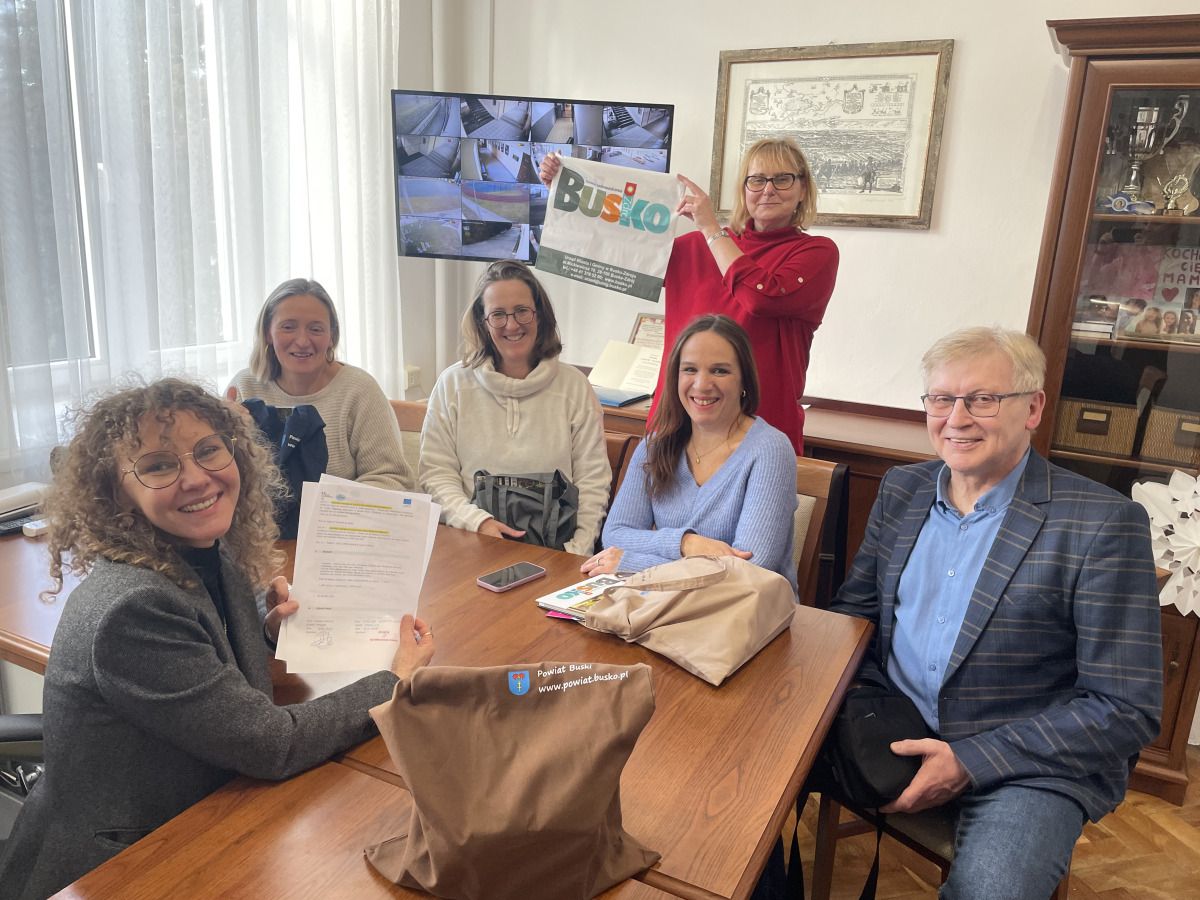 Podziękowania skierowano do Starostwa Powiatowego oraz Urzędu Miasta i Gminy Busko-Zdrój za wsparcie w postaci upominków promujących region we Francji.