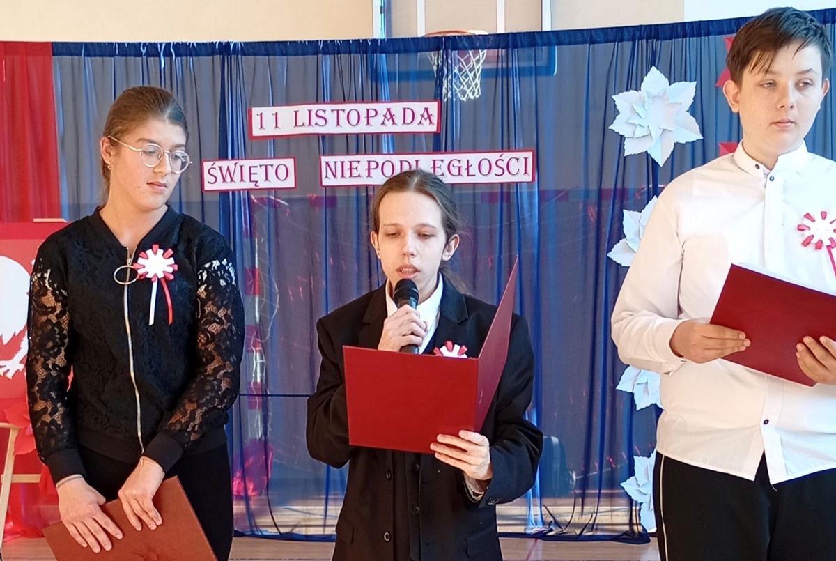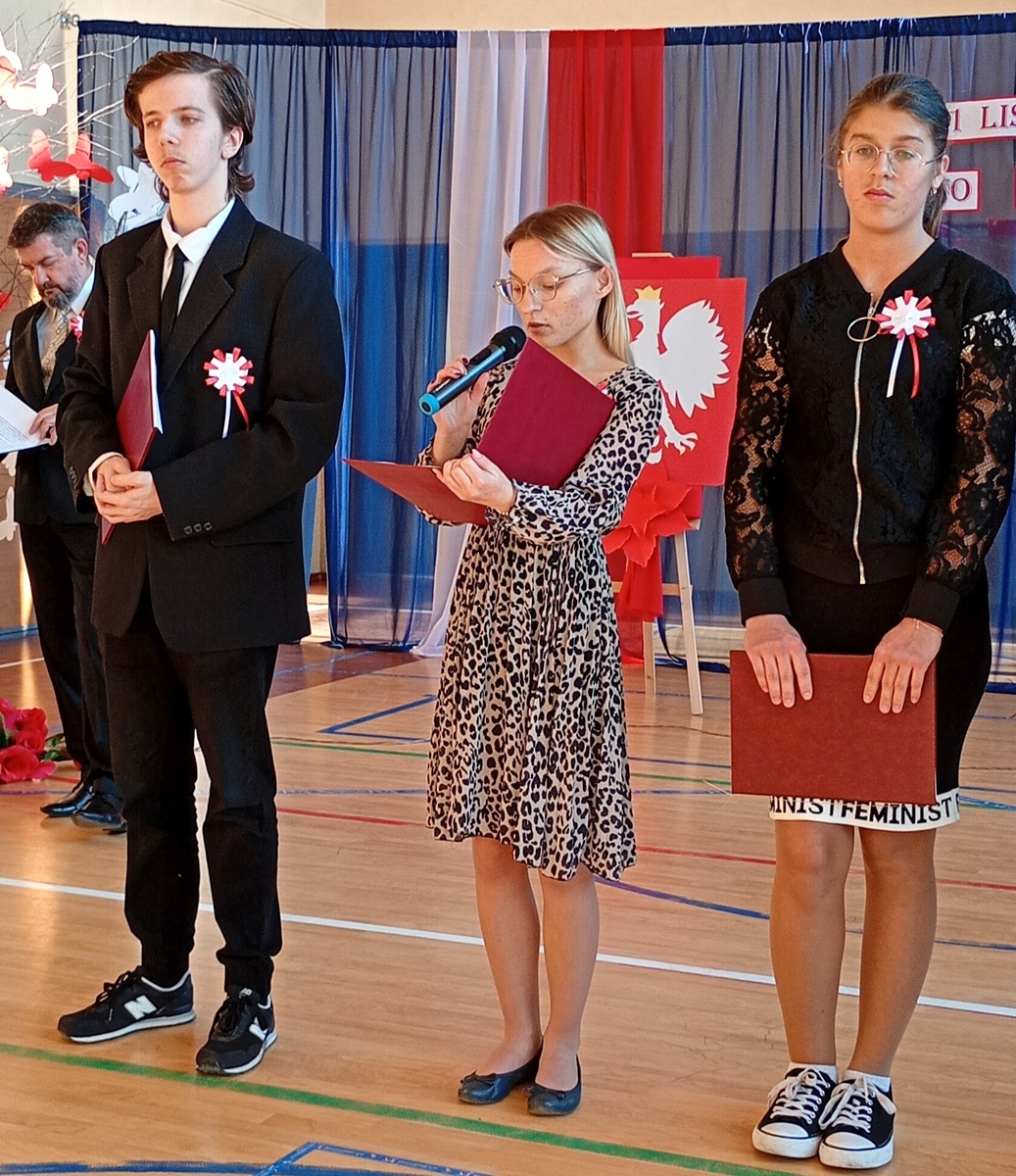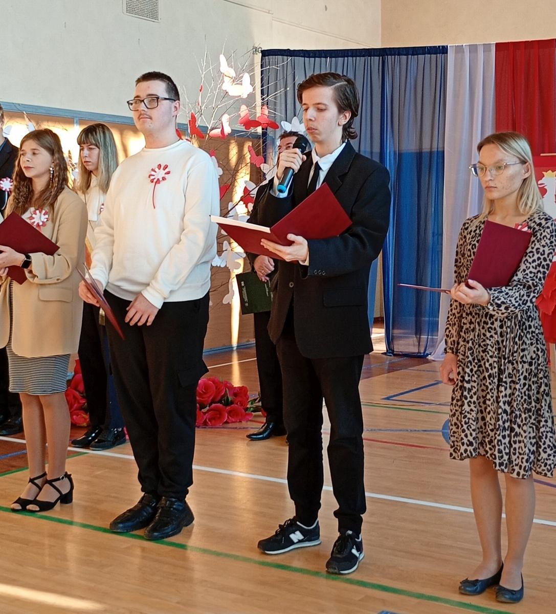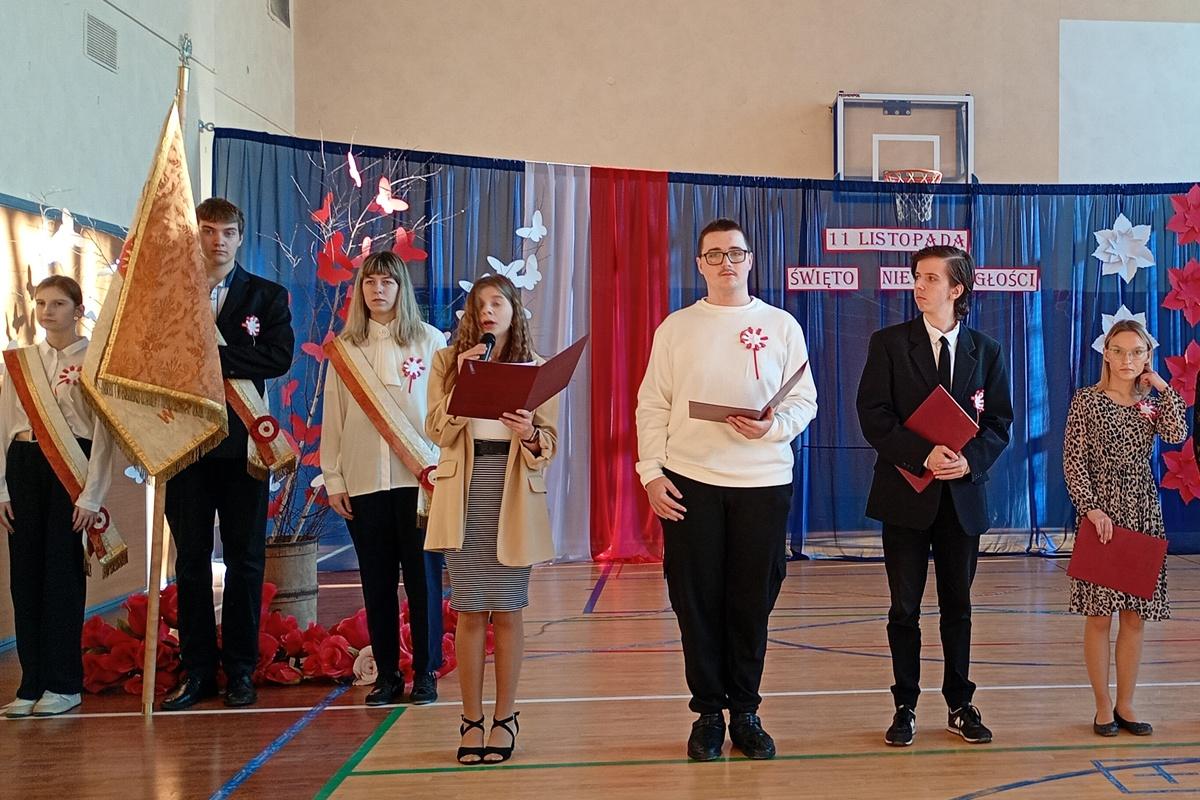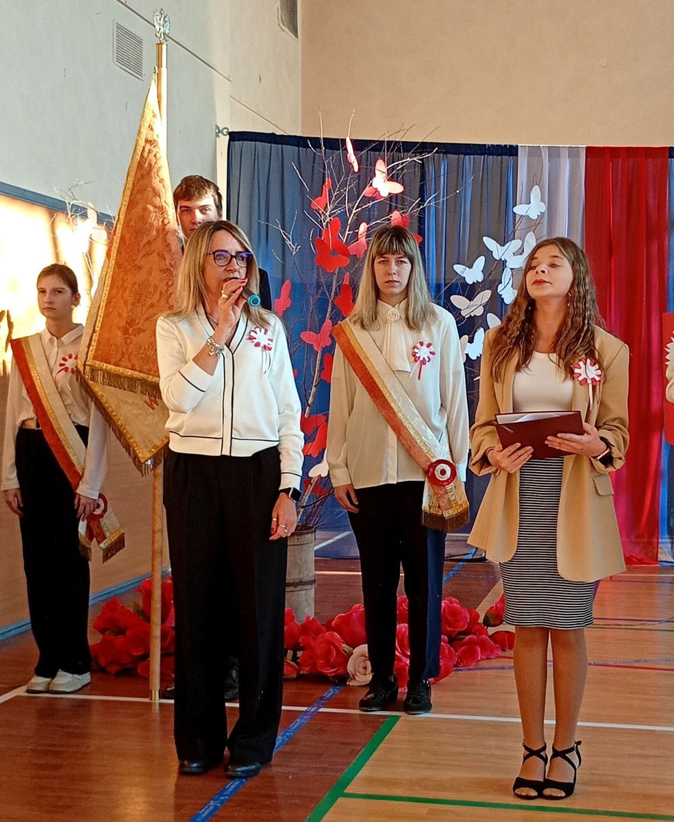 Uczniowie przygotowali montaż słowno-muzyczny „Dalekie drogi do wolności”, przeplatany pieśniami patriotycznymi. O godz. 11:11 cała społeczność włączyła się w akcję „Do hymnu”, śpiewając cztery zwrotki Mazurka Dąbrowskiego.