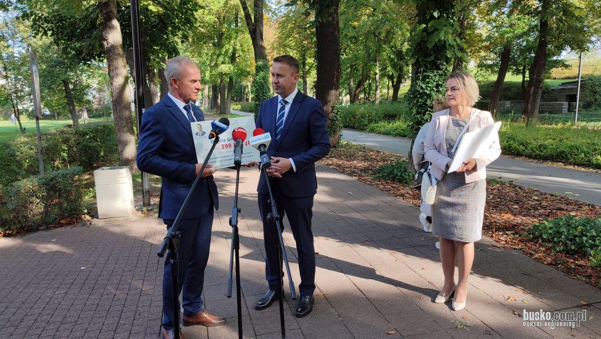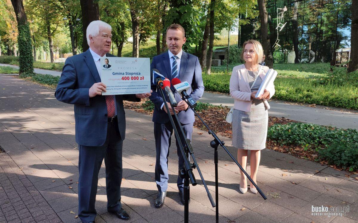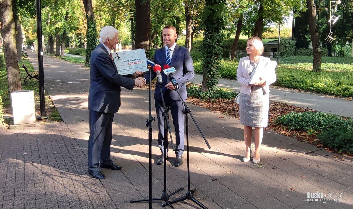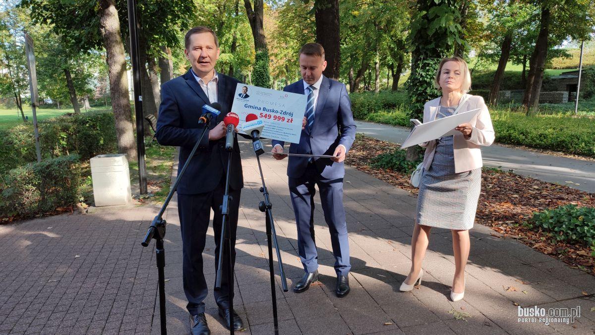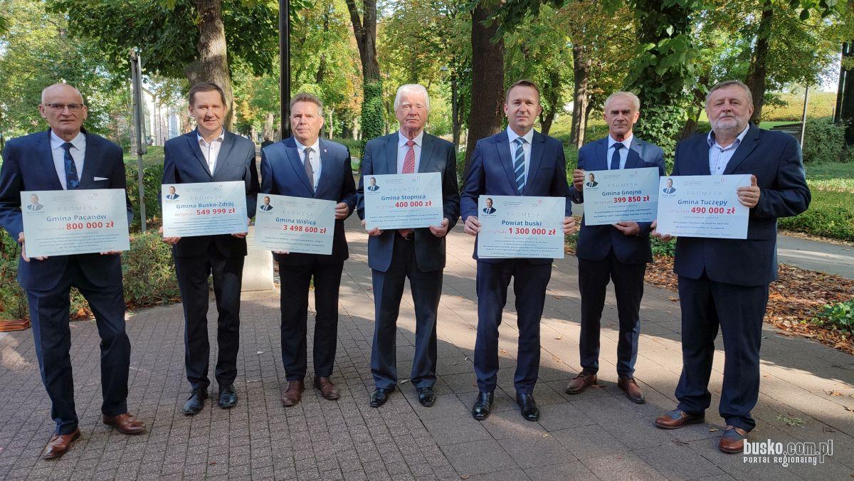 Ponad 8 mln zł trafiło do gmin Powiatu Buskiego. Promesy z rąk posła Michała Cieślaka odebrali: burmistrz Pacanowa, Wiesław Skop; skarbnik gminy Busko-Zdrój, Artur Tokarz; przewodniczący rady gminy Wiślica, Jacek Gocyk; burmistrz Stopnicy, Ryszard Zych; wójt Gnojna, Zbigniew Janik oraz sekretarz gminy Tuczępy, Artur Kański.