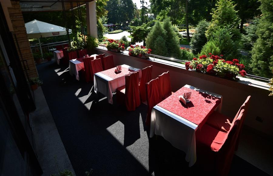 Jest usytuowana w samym centrum najpiękniejszej części Parku Zdrojowego, przy głównej promenadzie. W lecie urzekają swą wspaniałą panoramą miejsca na tarasach z widokiem na Park Zdrojowy, Muszlę Koncertową oraz Sanatorium Marconi. Do dyspozycji Gości oddajemy - kameralną i nastrojową salę na parterze oraz nocny Dance Club na piętrze, gdzie codziennie odbywają się Dancingi przy muzyce na żywo.