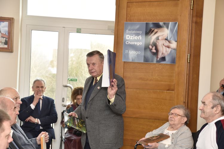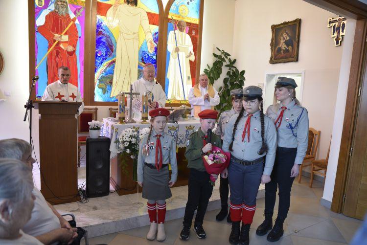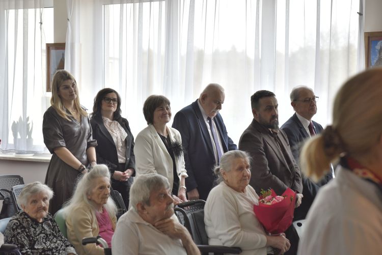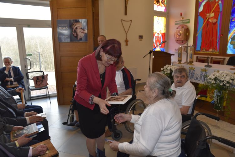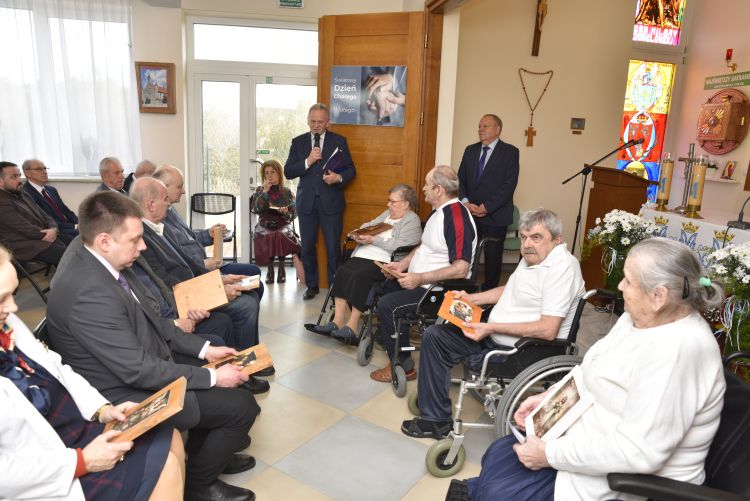 Szczególnym momentem liturgii było powitanie księdza biskupa w imieniu pacjentów, którego dokonali Stanisława Mazur i Józef Muszyński. We wprowadzeniu do mszy ksiądz Andrzej Jankowski nawiązał do idei miłosierdzia i działalności dobroczynnej założycieli Fundacji Świętego Brata Alberta, przypominając krótko historię i misję tej instytucji. Podziękowania za wieloletnią pracę na rzecz chorych i osób potrzebujących wsparcia przekazał na ręce prezesa Fundacji starosta buski Jerzy Kolarz. Życzenia i słowa wsparcia dla pacjentów skierowali również przedstawiciele władz samorządowych oraz środowisk senioralnych.