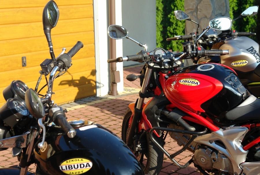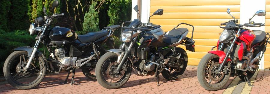 Do dyspozycji kursantów motocykle: Suzuki SFV 650 Gladius, Kawasaki Z 650, YBR-250, YBR-125.
